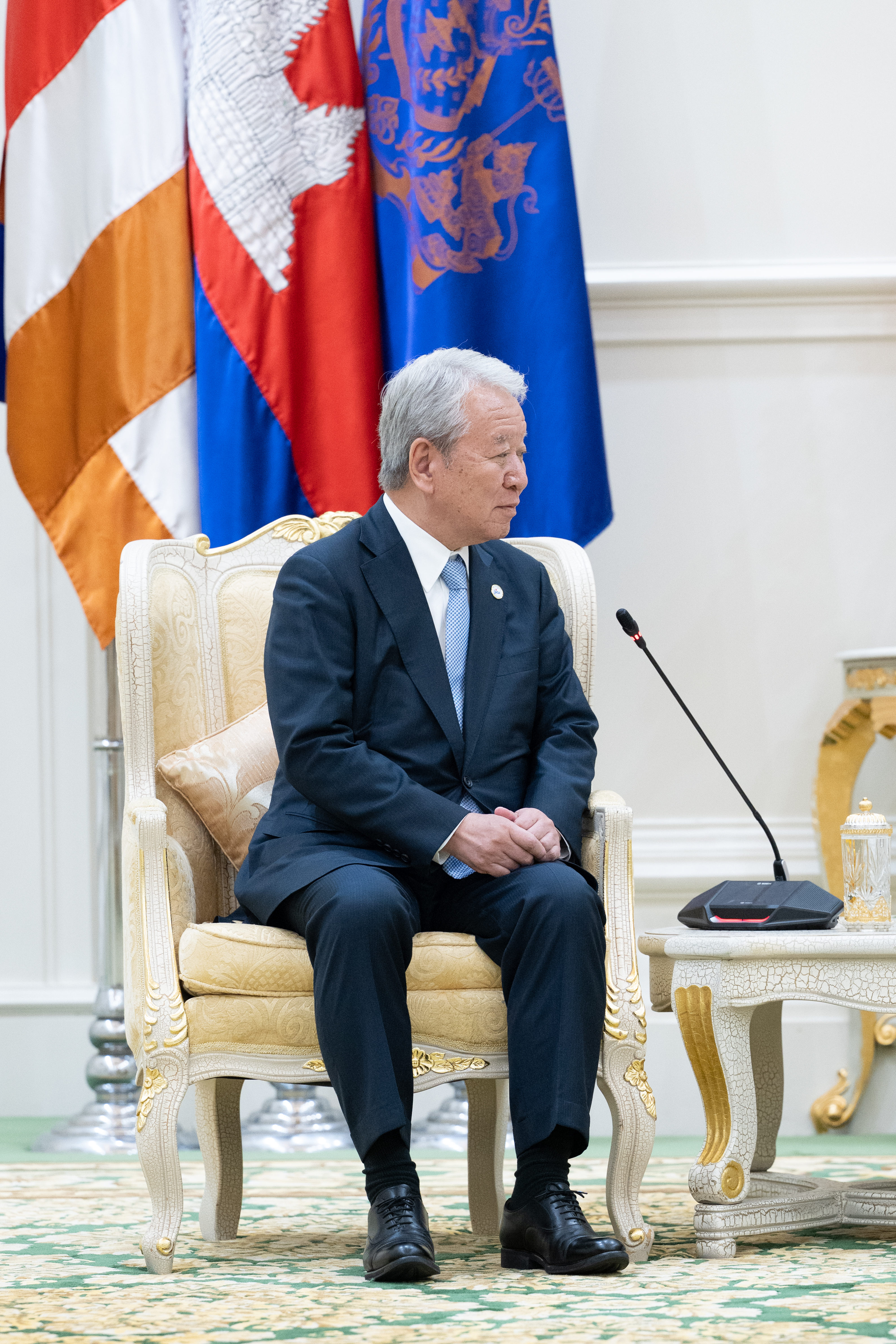 ជាការឆ្លើយតប, សម្តេចបវរធិបតីបានសម្តែងការពេញចិត្តចំពោះវឌ្ឍនភាពនៃទំនាក់ទំនង និងកិច្ចសហប្រតិបត្តិការកម្ពុជា-ជប៉ុន និងបានវាយតម្លៃខ្ពស់ចំពោះការចូលរួមរបស់ជប៉ុន ក្នុងការកសាងសុខសន្តិភាពនៅកម្ពុជា ក៏ដូចជាការអភិវឌ្ឍសង្គម-សេដ្ឋកិច្ចកម្ពុជា រហូតមកដល់សព្វថ្ងៃនេះ។ សម្តេចបវរធិបតី បានគូសបញ្ជាក់ថា ទំនាក់ទំនងកម្ពុជា និងជប៉ុន បានឈានដល់កម្រិតដៃគូយុទ្ធសាស្ត្រគ្រប់ជ្រុងជ្រោយ និងជឿជាក់ថា កិច្ចសហប្រតិបត្តិការកម្ពុជា-ជប៉ុននឹងត្រូវបានជំរុញនិងពង្រឹងឱ្យកាន់តែស៊ីជម្រៅ និងរឹងមាំថែមទៀត។ សម្តេចបវរធិបតីបានសម្តែងនូវការគាំទ្រ និងថ្លែងអំណរគុណចំពោះទីភ្នាក់ងារ JICA ដែលបានរួមចំណែកគាំទ្រដល់មូលដ្ឋានគ្រឹះនៃការអភិវឌ្ឍសេដ្ឋកិច្ចរបស់កម្ពុជា ដូចជា ការបោសសម្អាតមីន ការបណ្តុះបណ្តាលធនធានមនុស្ស និង ការអភិវឌ្ឍហេដ្ឋារចនាសម្ព័ន្ធ ជាដើម។ សម្តេចបវរធិបតីបានចែករំលែកអំពីចក្ខុវិស័យរបស់កម្ពុជា ក្នុងការអភិវឌ្ឍតំបន់ឆ្នេរសមុទ្ររបស់កម្ពុជា រួមទាំងការប្រែក្លាយខេត្តព្រះសីហនុ ជាតំបន់ឧស្សាហកម្ម និងជាមជ្ឈមណ្ឌលឡូជីស្ទីកក្នុងតំបន់ (regional logistic hub)។
