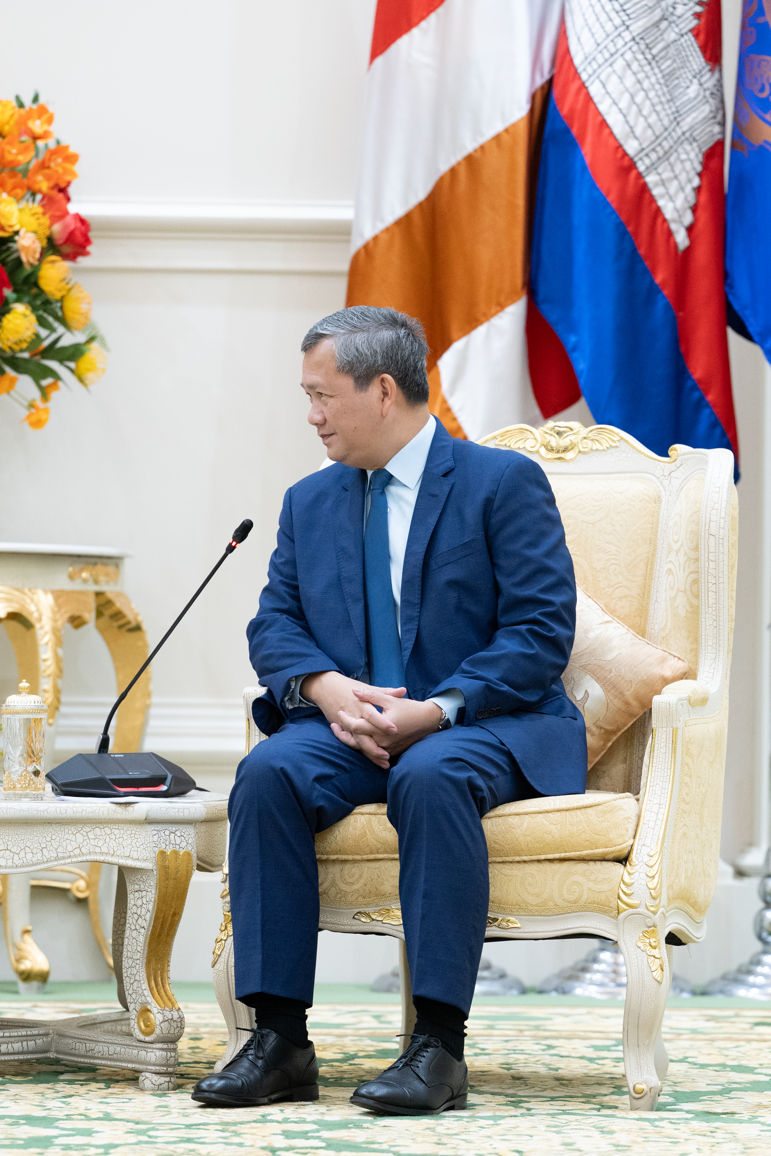 នាព្រឹកថ្ងៃទី១៣ ខែតុលា ឆ្នាំ២០២៥ នៅវិមានសន្តិភាព, សម្តេចមហាបវរធិបតី ហ៊ុន ម៉ាណែត នាយករដ្ឋមន្ត្រីនៃព្រះរាជាណាចក្រកម្ពុជា បានអនុញ្ញាតឱ្យ ឯកឧត្តមបណ្ឌិត Tanaka Akihiko ប្រធានទីភ្នាក់ងារសហប្រតិបត្តិការអន្តរជាតិជប៉ុន (JICA) ចូលជួបសម្តែងការគួរសម និងពិភាក្សាការងារ។