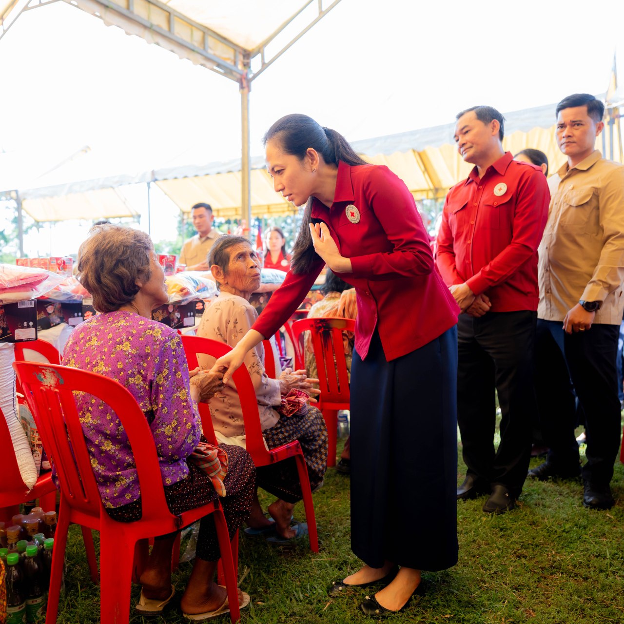 ប្រជាជនងាយរងគ្រោះបំផុតទាំង ១៣២៩គ្រួសារ បានថ្លែងអំណរគុណប្រកបដោយក្តីត្រេតអរចំពោះកាកបាទក្រហមកម្ពុជា ដែលមានសម្តេចព្រះមហាក្សត្រី ព្រះវររាជមាតាជាតិខ្មែរ ជាព្រះប្រធានកិត្តិយស និងសម្តេចកិត្តិព្រឹទ្ធបណ្ឌិត ប៊ុន រ៉ានី ហ៊ុនសែន ជាប្រធាន ដែលបានផ្តល់អមណោយមនុស្សធម៌សម្រាលការលំបាកនៅពេលនេះដោយក្នុងមួយគ្រួសារៗទទួលបាន៖ អង្ករ ៣០គីឡូក្រាម, មី១កេស, ត្រីខ ១០កំប៉ុង, ទឹកស៊ីអ៊ីវ ១យួរ, ទឹកត្រី ១យួរ, ម្សៅសាប៊ូ ១កញ្ចប់, សាប៊ូដុសខ្លួន ១ដប, ប្រេងខ្យល់ ២ដបតូច, ឃីត (មុង ភួយ សារុង ក្រមា) ១កញ្ចប់, ថវិកា ២០.០០០រៀល ព្រមទាំងអាហារសម្រន់ នំប៉័ង ១ដើម និងទឹកបរិសុទ្ធ ១ដប។